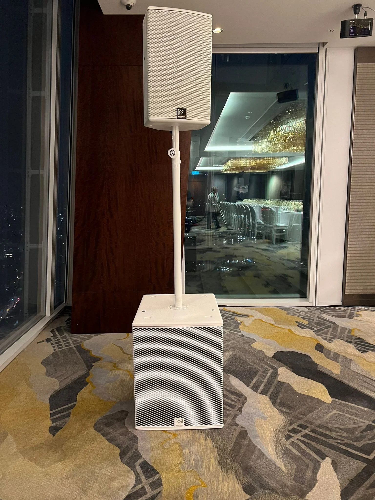 We also stock white PA systems that blend seamlessly into the background with a clean feel which is often preferred by the high-end brands and venues we work with.
